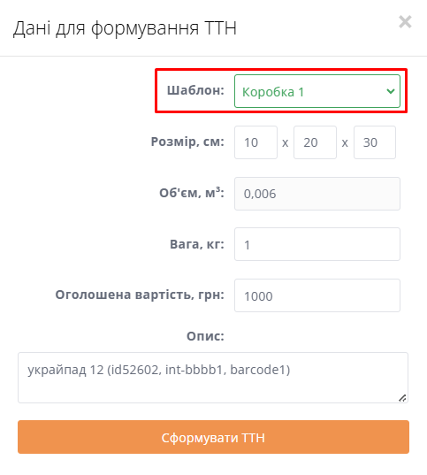 При створенні ТТН із заявки ви зможете вибрати заготовлений шаблон зі списку: