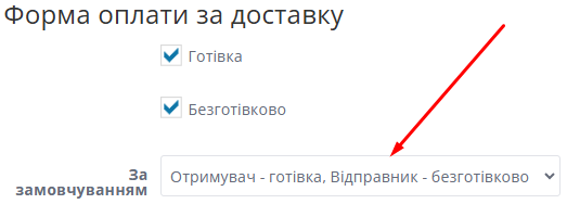 - Якщо за доставку платить отримувач - встановиться форма оплати "Готівка".
