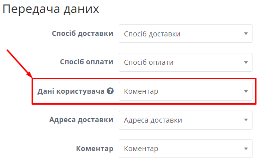 - ви можете вибрати, в яке поле будуть передаватися дані користувача, якщо вони відрізняються від даних отримувача: