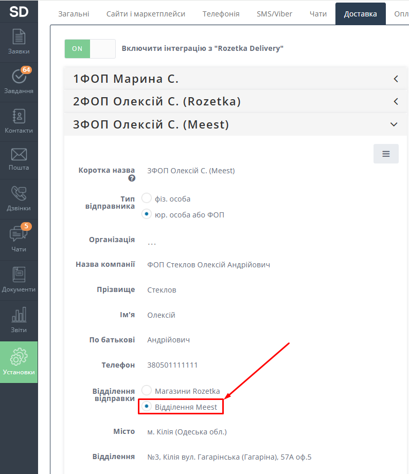 Додали можливість відправки до магазинів Rozetka з відділень Meest.