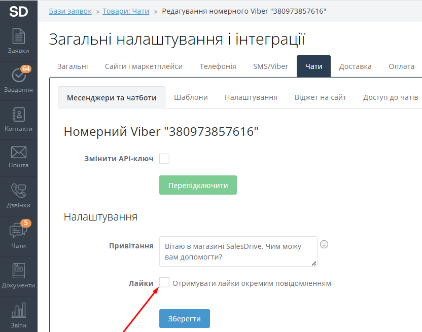 За замовчуванням отримання лайків в номерному вайбер відключено.
