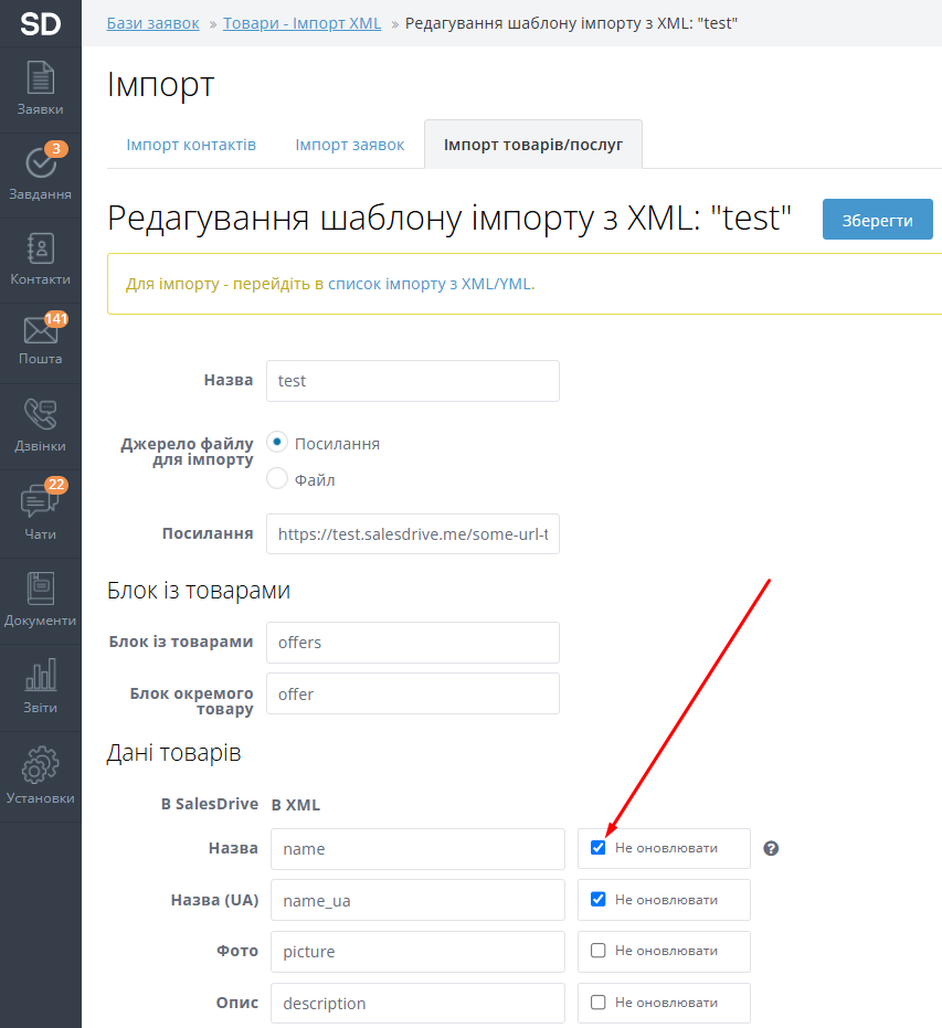 При імпорті товарів з XML (YML) можна вказати, які поля не оновлювати.
