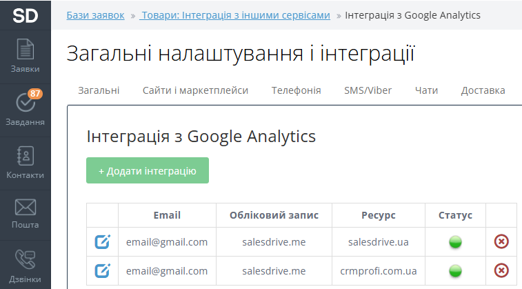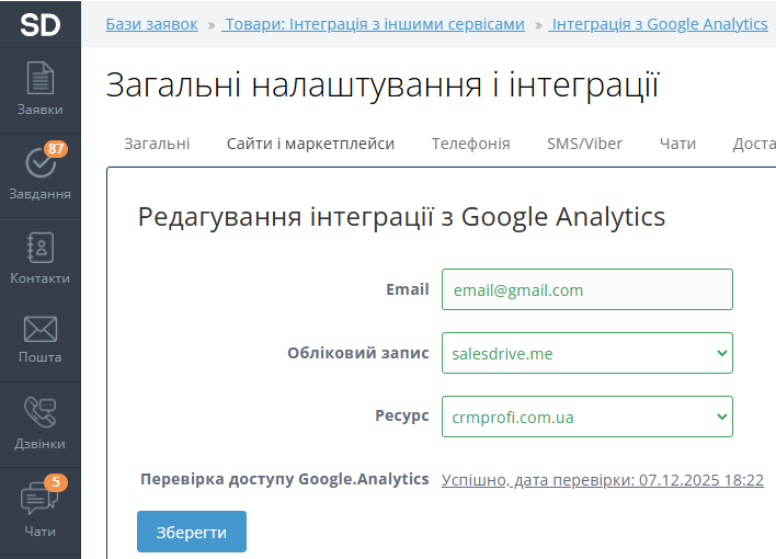 - Імпорт відвідувань (сеансів) з Google Analytics в SalesDrive.